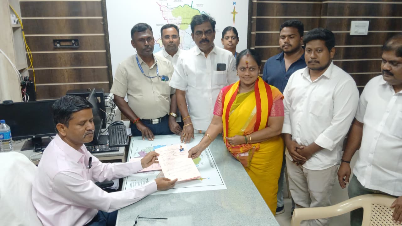 தாராபுரம் (தனி) தொகுதி: தவெக வேட்பாளர் கௌரி சித்ரா வேட்பு மனு தாக்கல்.