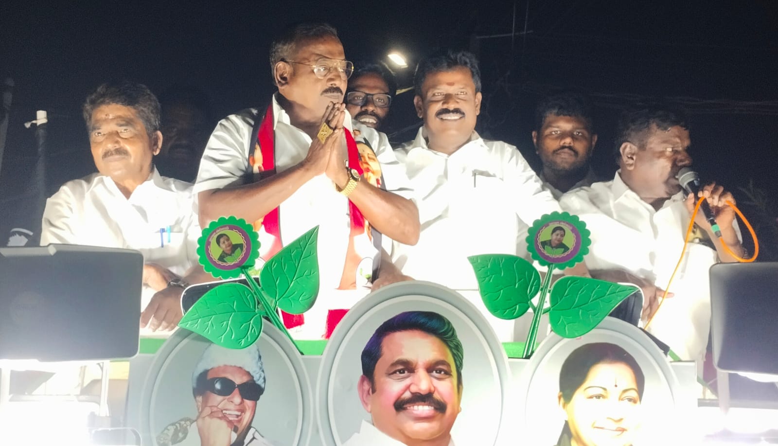 தூத்துக்குடி தொகுதி வேட்பாளராகிய எனக்கு இரட்டை இலை சின்னத்தில் அனைவரும் வாக்களித்து மீண்டும் தமிழகத்தில் எடப்பாடி தலைமையிலான அதிமுக ஆட்சி அமைவதற்கு அனைவரும் ஓத்துழைக்க வேண்டும் என்று பேசினாா்.