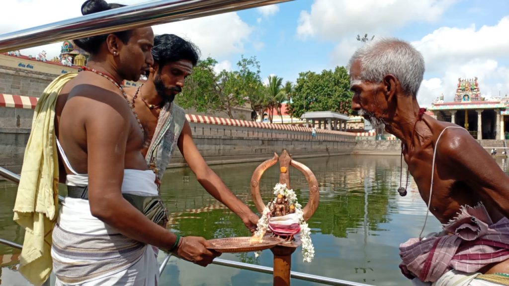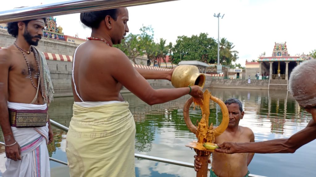 தொடர்ந்து அஸ்திர தேவர் மூன்று தீர்த்த குளங்களிளும் தீர்த்தம் அளிக்கும் தீர்த்தவாரி நிகழ்ச்சி நடைபெற்றது , இந்நிகழ்வின் போது திரளான பக்தர்கள் தீர்த்த குளங்களில் நீராடி வழிபட்டனர்.தீர்த்தவாரி பூஜைகளை ராமநாதன் குருக்கள் செய்து வைத்தார்.