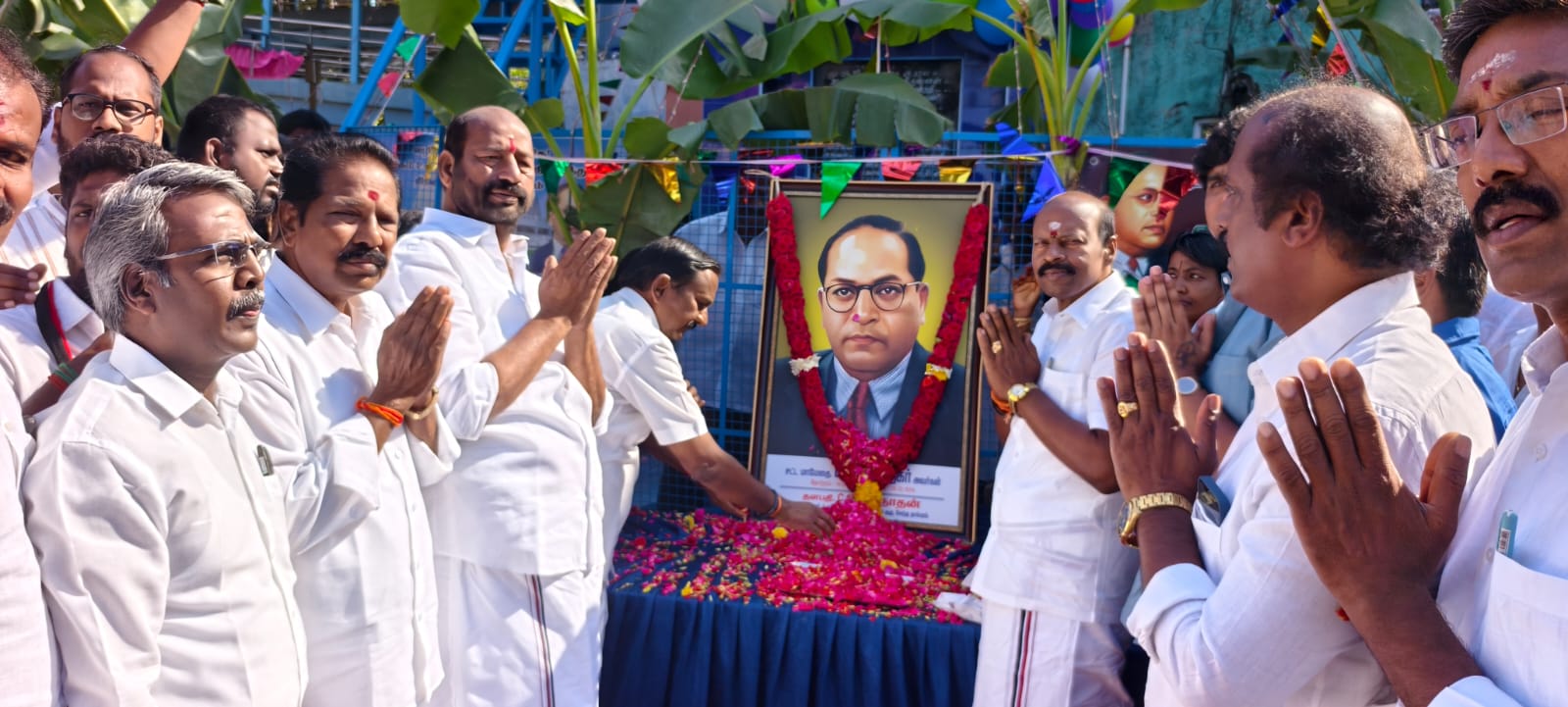 செங்கல்பட்டு மேற்கு மாவட்ட அதிமுக சார்பில் அண்ணல் அம்பேத்கர் அவர்களின் 136-வது பிறந்தநாளை முன்னிட்டு தாம்பரம் பேருந்து நிலையம் அருகே அமைந்துள்ள அண்ணல் அம்பேத்கரின் திருவுருவ வெண்கல சிலைக்கு செங்கல்பட்டு மேற்கு மாவட்ட கழக செயலாளர் தாம்பரம் சட்டமன்ற தொகுதி வேட்பாளர் சிட்லபாக்கம் ச. ராஜேந்திரன் மாலை அணிவித்து, திருவுருவப்படத்திற்கு மலர் தூவி மரியாதை செலுத்தினர்.