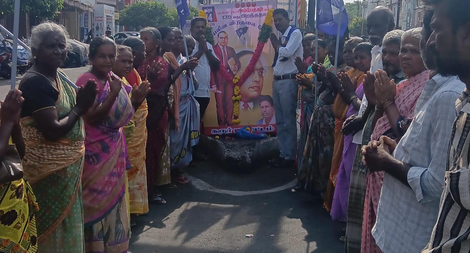 கரூர் மாநகர மனோகரா கார்னர் அருகில் காமராஜர் சிலை முன்பு சட்டமேதை டாக்டர் அம்பேத்காரின் 135 வது பிறந்தநாள் விழாவை பட்டியலின விடுதலைப் பேரவையின் சார்பில் திருவுரு படத்திற்கு மாலை அணிவித்து, மலர்தூவி,மரியாதை செய்தனர்.