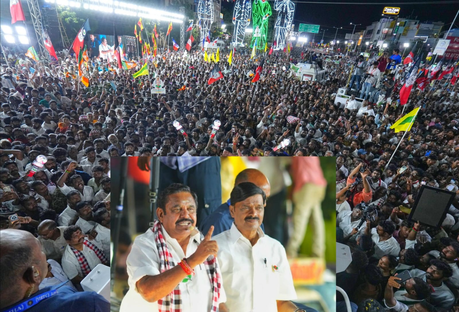 அ.தி.மு.க. மற்றும் தேசிய ஜனநாயக கூட்டணி வேட்பா ளர்களை ஆதரித்து அ.தி.மு.க. பொதுச்செயலாளர் எடப் பாடி பழனிசாமி தீவிர பிரசாரம் செய்து வருகிறார். அவர் சாலை மார்க்கமாக மதுரை மாவட் டம் உசிலம்பட்டி பகுதியில் மக்களை சந்தித்து பேசினார். பின்னர் திருமங்கலம் தொகு திக்கு உட்பட்ட செக்கானூரணி யில் அரசு போக்கு வரத்துக்கழக பணிமனை முதல் புளியங்குளம் வரை வாகனத்தில் நகர்வலம் வந்தார். அப்போது அவருக்கு முன்னாள் அமைச்சர் ஆர்.பி.உதயகுமார் தலைமையில் மேளதாளம் முழங்க, கிராம கலை நிகழ்ச் சியுடன் வரவேற்பு கொடுக் கப்பட்டது. பெண்கள் பூரண கும்ப மரியாதை செய்தும், வழி நெடுகில் பூக்களை தூவி யும் வரவேற்றனர்.