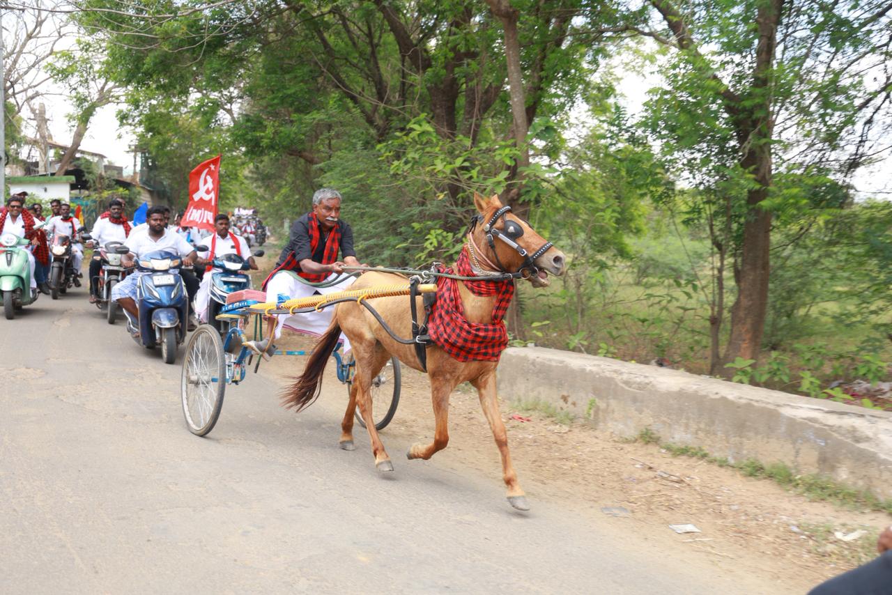 அப்போது குதிரை வண்டி ஓட்டியபடி பொதுமக்களிடம் வாக்கு சேகரிப்பில் ஈடுபட்டார். அவருக்கு பொதுமக்கள் உற்சாகமாக ஆள் உயர மாலை அணிவித்தும் ஆரத்தி எடுத்தும் வரவேற்பு அளித்தனர்.