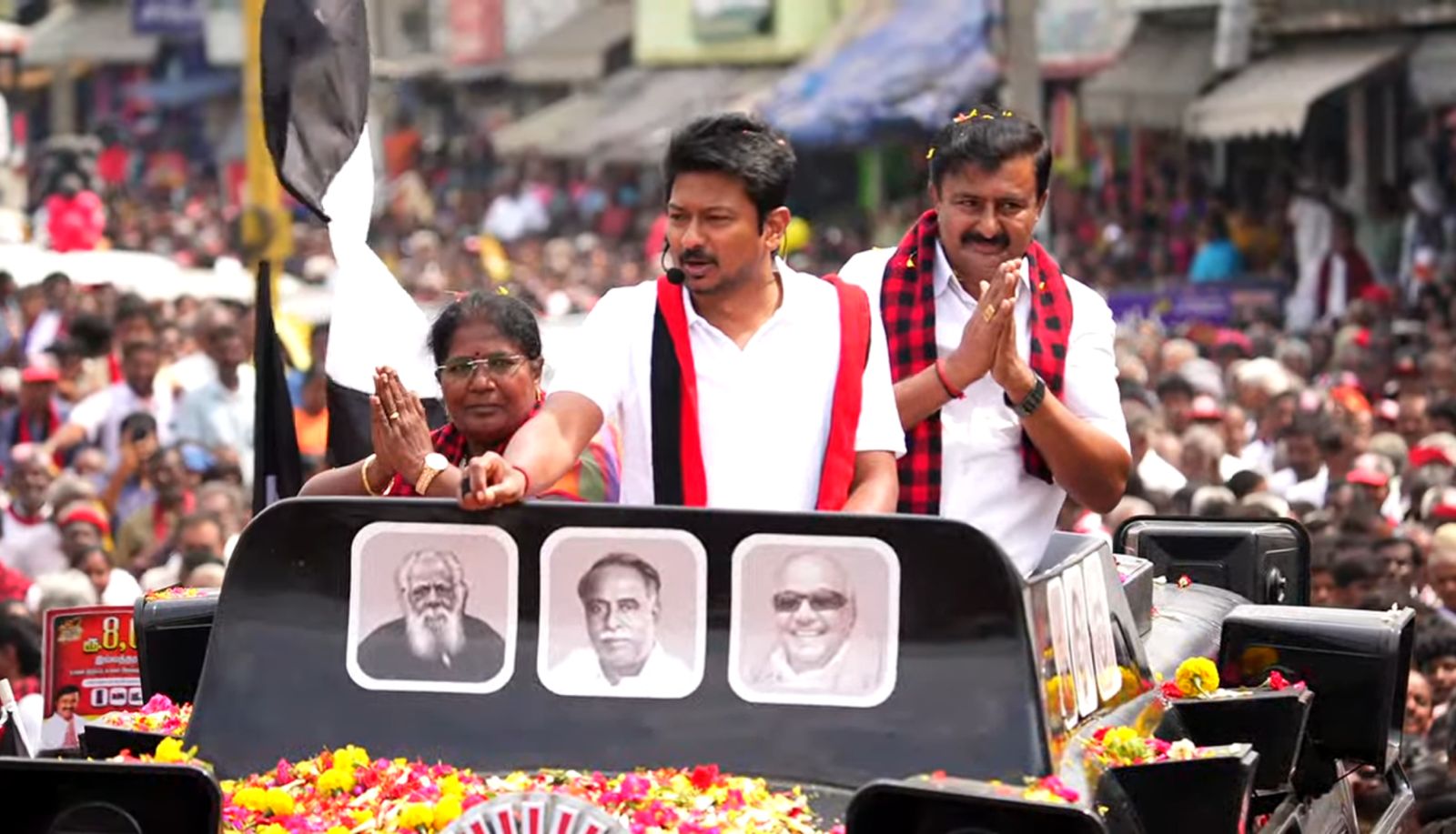 நீங்கள் கேட்டதால் காட்டினேன் அவர் என்னை திட்டுகிறார். செத்து போ என்கிறார். இந்த தேர்தல் தமிழ்நாடு vs டெல்லி. தமிழ்நாட்டை டெல்லி தொடர்ந்து புறக்கணிக்கிறது. டி லிமிட்டேஷனில் 47 எம்.பி தான் தருவோம் என சொல்லி வருகின்றனர். டெல்லி அணியை ஓட ஓட விரட்ட வேண்டும். தலைவர் மகனாக கேட்கிறேன். கலைஞர் பேரனாக இருந்து கேட்கிறேன். என தெரிவித்தார்.