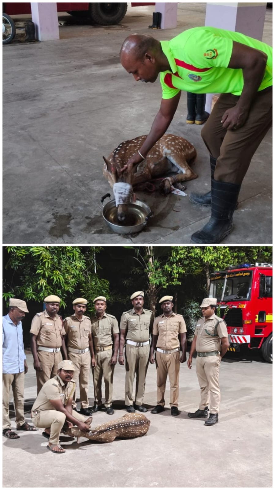 அன்னை சிவகாமி நகரில் மான் வழி தவறி வீடுகள் இருக்கும் இப்பகுதியில் தஞ்சம் பொதுமக்கள் தீயணைப்புத் துறையினருக்கு தகவல் கொடுத்து மானை பத்திரமாக காலில் கயிறு கட்டி மீட்டுச் சென்று வனத்துறை வனத்துறையினரிடம் ஒப்படைப்பு