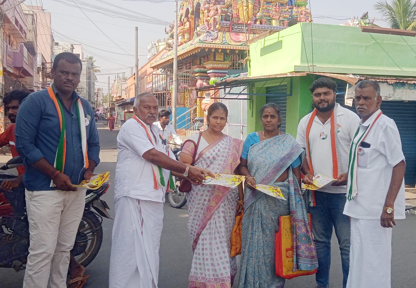 இதில் மாவட்டத் துணைத் தலைவர் புகழேந்தி, எஸ் சி எஸ் டி பிரிவு ரமேஷ் குமார், காங்கிரஸ் இளைஞர் அணி சதீஷ்குமார் விஜயகுமார், திருமுருகன், இளைஞர் காங்கிரஸ் தலைவர் , ஐடி விங் மனோஜ் ஆகியோர் கலந்துகொண்டு கை சின்னத்திற்கு வாக்கு சேகரித்தனர்.