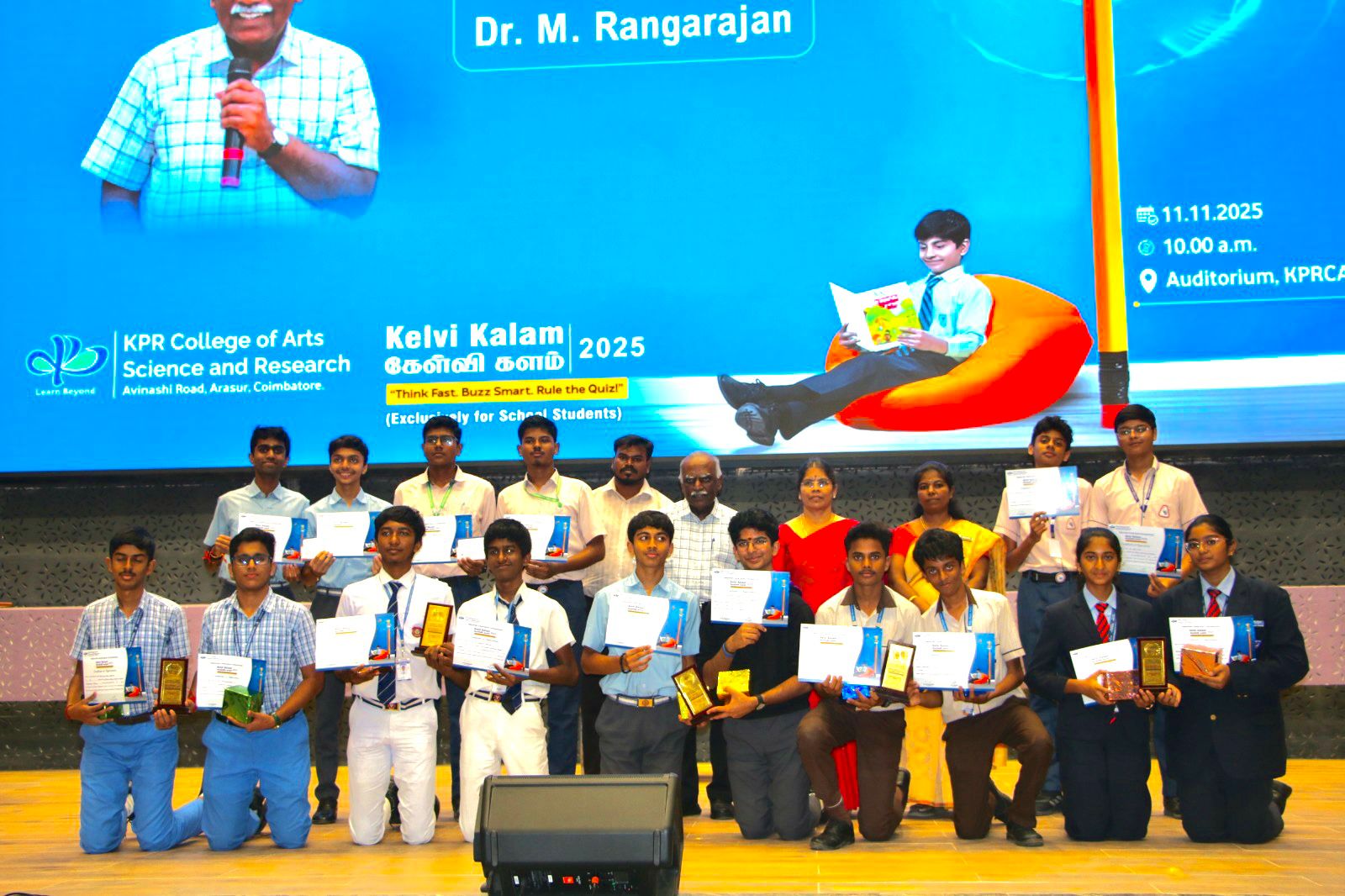 கோவை கேபிஆர் கலை அறிவியல் மற்றும் ஆராய்ச்சிக் கல்லூரியில் தேசிய அளவில பள்ளி மாணவர்களுக்கான வினாடிவினாப் போட்டி கேள்விக்களம்-2025 நடைபெற்றது.