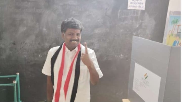 பெரம்பலூர் அதிமுக வேட்பாளர் இளம்பை. தமிழ்ச்செல்வன் வாக்களித்தார்.