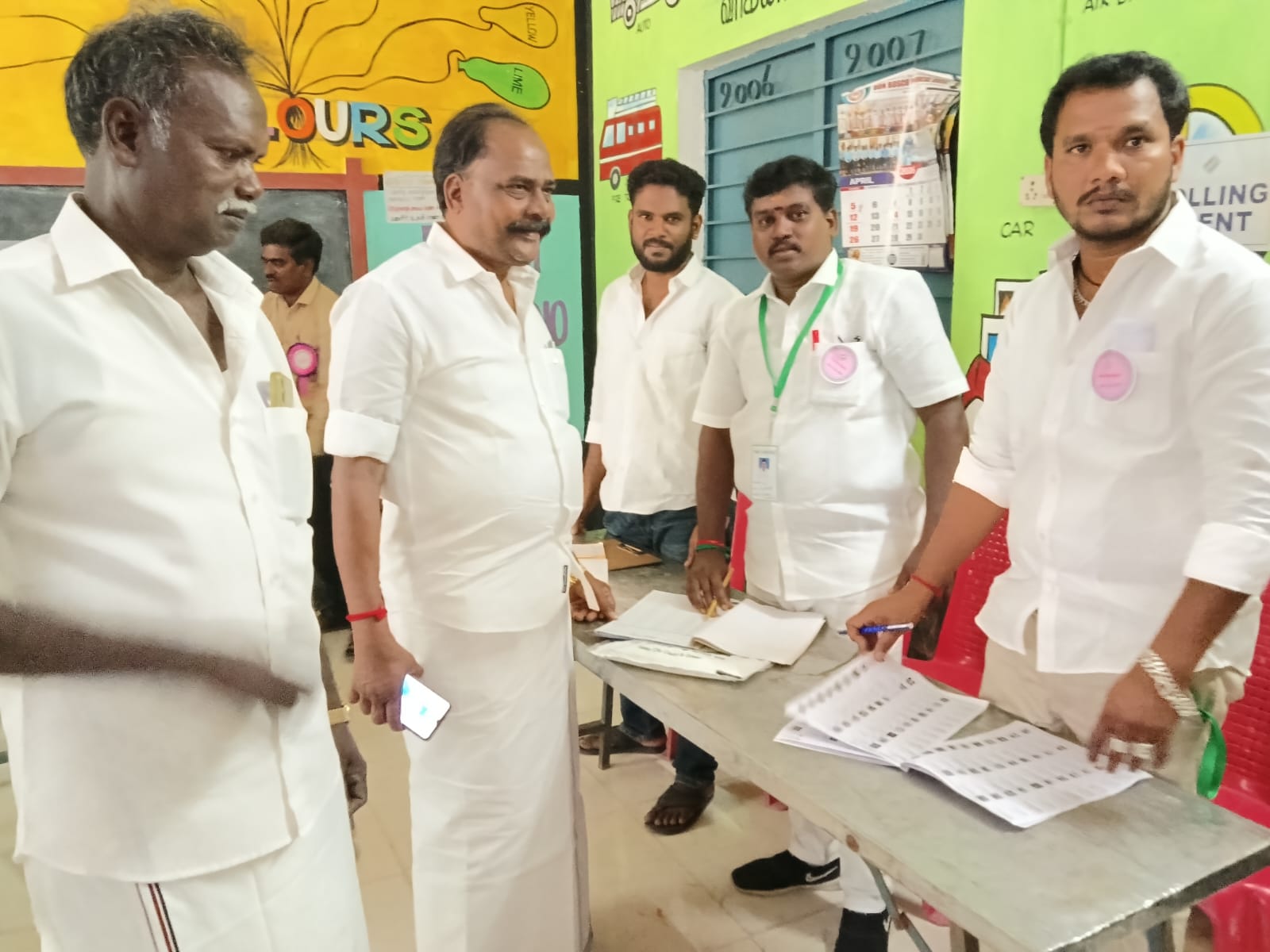 கூவத்தூர் வாக்குசாவடிகளை புரட்சி பாரதம் கட்சி பொதுச்செயலாளர் கே.பி சகாதேவன் பார்வையிட்டார்