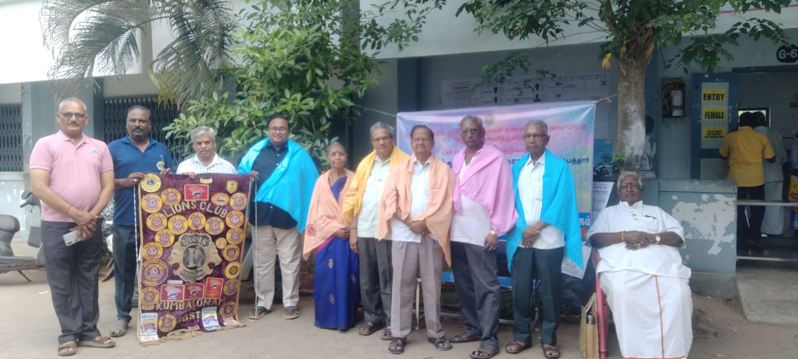 கும்பகோணம் ஹோஸ்ட் லயன்ஸ் சங்கம்,அரசினர் மகளிர் கல்லூரி லியோ சங்கம் , தஞ்சை மாவட்ட பார்வை இழப்பு தடுப்புச் சங்கம் அரவிந்த் கண் மருத்துவமனையுடன் இணைந்து நடத்திய ஸ்ரீ செந்தூர் ஆபரண மாளிகை, வி.எல் தங்க மாளிகை லயன் சம்பத் , மோகன்ராம் நினைவாக ,சுபாஷ் ஆகியோரின் குடும்பத்தினர்