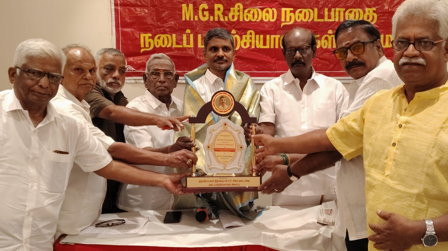 திருச்சி நீதிமன்றம் எம்ஜிஆர் சிலை நடை பயிற்சியாளர்கள் அமைப்பு பொதுக்குழு உறுப்பினர்கள் அனைவரும் ஆளுநர் விருதாளர் விஜயகுமாரைப் பாராட்டினர்.