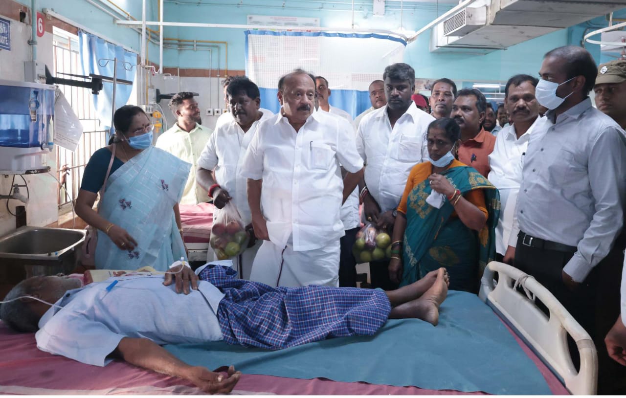 வேளாண்மை உழவர் நலத்துறை அமைச்சர் பூவாணிக்குப்பம் பகுதியில் ஏற்பட்ட சாலை விபத்தில் காயமடைந்து அரசு தலைமை மருத்துவமனையில் சிகிச்சை பெற்று வருபவர்களை நேரில் சந்தித்து நலம் விசாரித்தார்