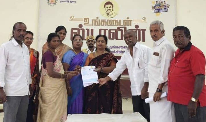 உங்களுடன் ஸ்டாலின் முகாமில் பொதுமக்களிடமிருந்து மனுக்களை பெற்ற மேயர் இளமதி ஜோதிபிரகாஷ்.திண்டுக்கல் மாநகராட்சிக்கு உட்பட்ட 46-வது வார்டு பகுதியில் உங்களுடன் ஸ்டாலின் முகாம் நடைபெற்றது .
