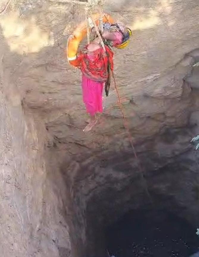 அந்த சமயம், கிணறு அருகே ஆடு மேய்த்துக் கொண்டிருந்த சரஸ்வதி, திடீரென கால் தவறி கிணற்றுக்குள் விழுந்தார். உடனே அவர் கிணற்றில் உள்ள பாறை கற்களைப் பிடித்துக் கொண்டு “என்னை காப்பாற்றுங்கள், என்னை காப்பாற்றுங்கள்” என சத்தமிட்டார். பல மணி நேரம் அவர் உதவி கோரி கூவியபோது, அந்த வழியாகச் சென்ற ஒருவர் கிணற்றிலிருந்து சத்தம் கேட்க, எட்டிப் பார்த்தபோது ஒரு பெண் உள்ளே தத்தளித்துக் கொண்டிருப்பது தெரிந்தது.