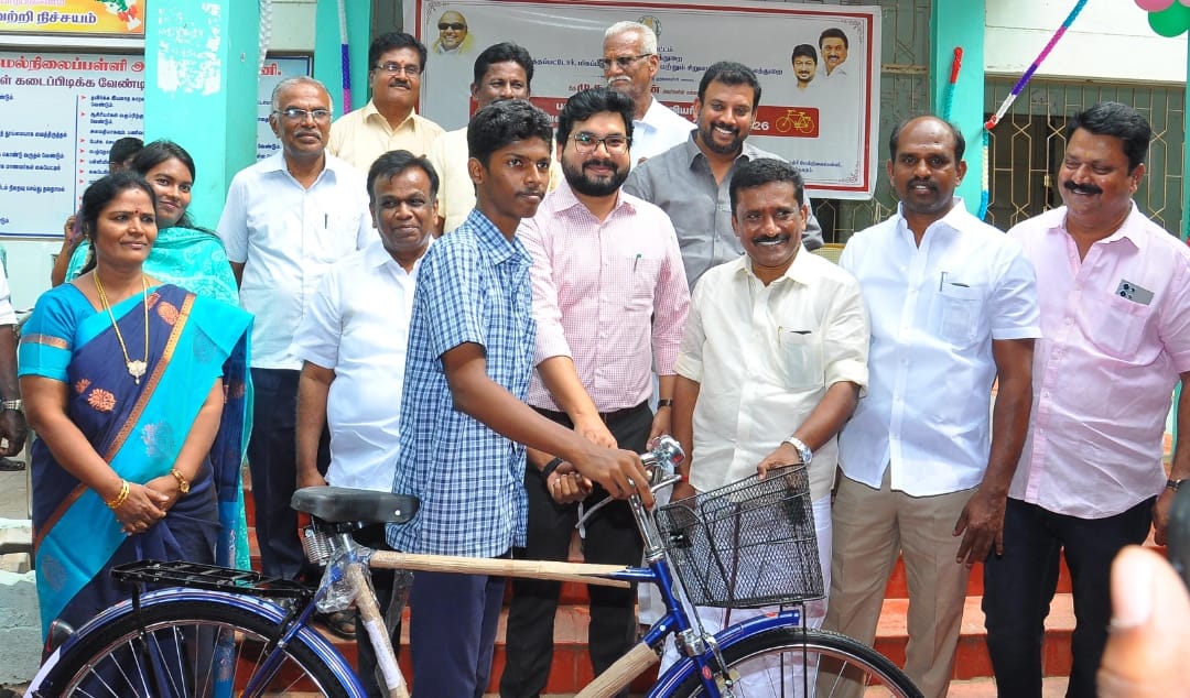 தேனி அரசு மாதிரி மேல்நிலைப் பள்ளியில் மாணவ மாணவியர்களுக்குஇலவச சைக்கிளை வழங்கிய மாவட்ட கலெக்டர்.தமிழக துணை முதல்வர் உதயநிதி ஸ்டாலின் சிவகங்கை மாவட்டம் காரைக்குடி அழகப்பா மாதிரி மேல்நிலைப்பள்ளியில் நடைபெற்ற பள்ளி கல்வித்துறை பிற்படுத்தப்பட்டோர் மிகவும் பிற்படுத்தப்பட்டோர் மற்றும் சிறுபான்மையினர் நலத்துறையின் சார்பில் 2025.ஆம் ஆண்டிற்கு இலவச சைக்கிள் வழங்கும் திட்டத்தின் கீழ் 11 ஆம் வகுப்பு பயிலும் மாணவ மாணவிகளுக்கு சைக்கிள் வழங்கும் திட்டத்தை தொடங்கி வைத்தார்