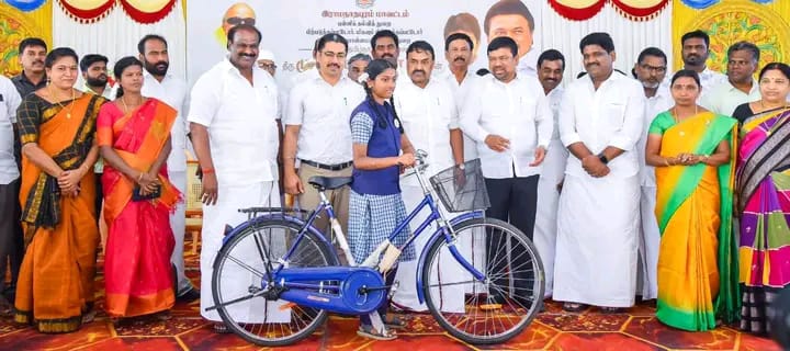 இராமநாதபுரம் மாவட்டம் பரமக்குடியில் உள்ள கீழமுஸ்லீம் மேல்நிலைப்பள்ளியில் பள்ளிக்கல்வித்துறையின் மூலம் மேல்நிலை முதலாம் ஆண்டு படிக்கும் மாணவ , மாணவிகளுக்கு விலையில்லா மிதிவண்டிகளை தமிழக வனம் மற்றும் கதர் கிராம தொழில்கள் வாரியத்துறை அமைச்சர் ஆர்.எஸ். ராஜகண்ணப்பன் வழங்கினார்.உடன் மாவட்ட ஆட்சித்தலைவர் . சிம்ரன் ஜீத்சிங் காலோன் இராமநாதபுரம் நாடாளுமன்ற உறுப்பினர் நவாஸ்கனி திருவாடானை சட்டமன்ற.உறுப்பினர் . இராம.கருமாணிக்கம் மற்றும் பள்ளி நிர்வாககுழுவினர் ஆசிரியர் பெருமக்கள் ஆகியோர் உள்ளனர்.