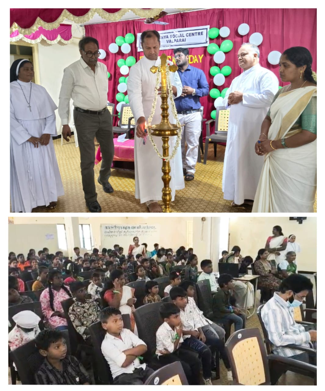 கோவை மாவட்டம் வால்பாறையில் உள்ள காருண்யா சமூக மையத்தின் சார்பாக குழந்தைகள் தின விழாவை முன்னிட்டு காருண்யா சமூக மையத்தின் இயக்குனர் சிஜி ஜோஸ் தலைமையில் காருண்யா மையத்தில் பங்கு தந்தை ஜோசப் புத்தூர் குத்துவிளக்கேற்றி தொடங்கி வைத்தார்