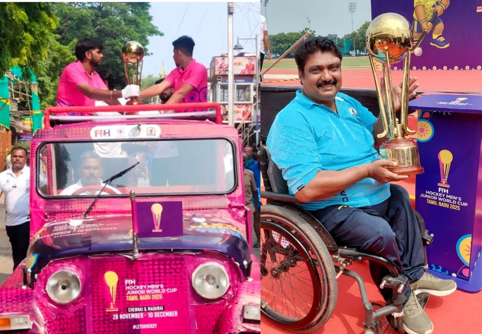 சென்னை,மதுரையில் நவ.28 முதல் டிச.10 வரை 14-வது ஜூனியர் ஆடவர் ஹாக்கி உலகக் கோப்பை போட்டி நடை பெறுகிறது. அதனையொட்டி அப்போட்டிக்கான வெற்றிக் கோப்பை சுற்றுப்பயணம் தமிழகம் முழுவதும் நடை பெறுகிறது. சிவகங்கை மாவட்டத்திலிருந்து நேற்று முன்தினம் மாலையில் உலகக் கோப்பை வாகனத்துக்கு மாவட்ட நிர்வாகம் சார்பில் வரவேற்பு அளிக்கப்பட்டது.