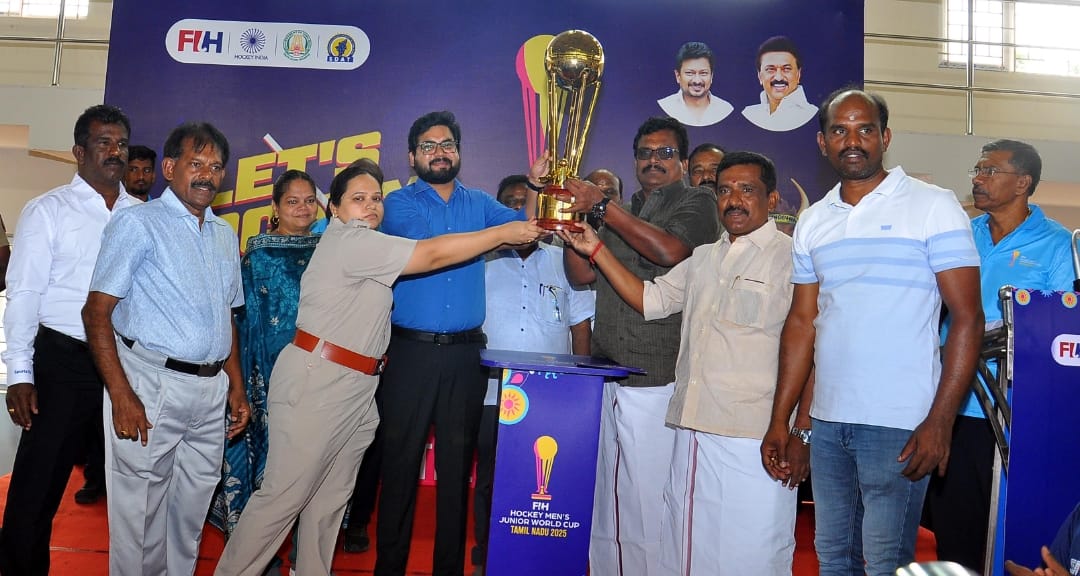 தேனி மாவட்டத்திற்கு வருகை தந்த உலககோப்பையினை காட்சிப்படுத்தல் தேனி மாவட்டத்திற்கு ஞாயிற்றுக்கிழமை வருகை தந்த 14 ஆவது ஹாக்கி இளையோர் உலக கோப்பையினை மாவட்ட விளையாட்டு மைதான புதிய உள் விளையாட்டு அரங்கில் மாவட்ட கலெக்டர் ரஞ்ஜீத் சிங் தேனி பாராளுமன்ற உறுப்பினர் தங்க தமிழ்ச்செல்வன் எம்பி பெரியகுளம் சட்டமன்ற உறுப்பினர் கே எஸ் சரவணக்குமார் ஆகியோர் முன்னிலையில் வரவேற்று உலக கோப்பை போட்டிக்கான வெற்றி கோப்பையினை காட்சிப்படுத்தினார்கள்.