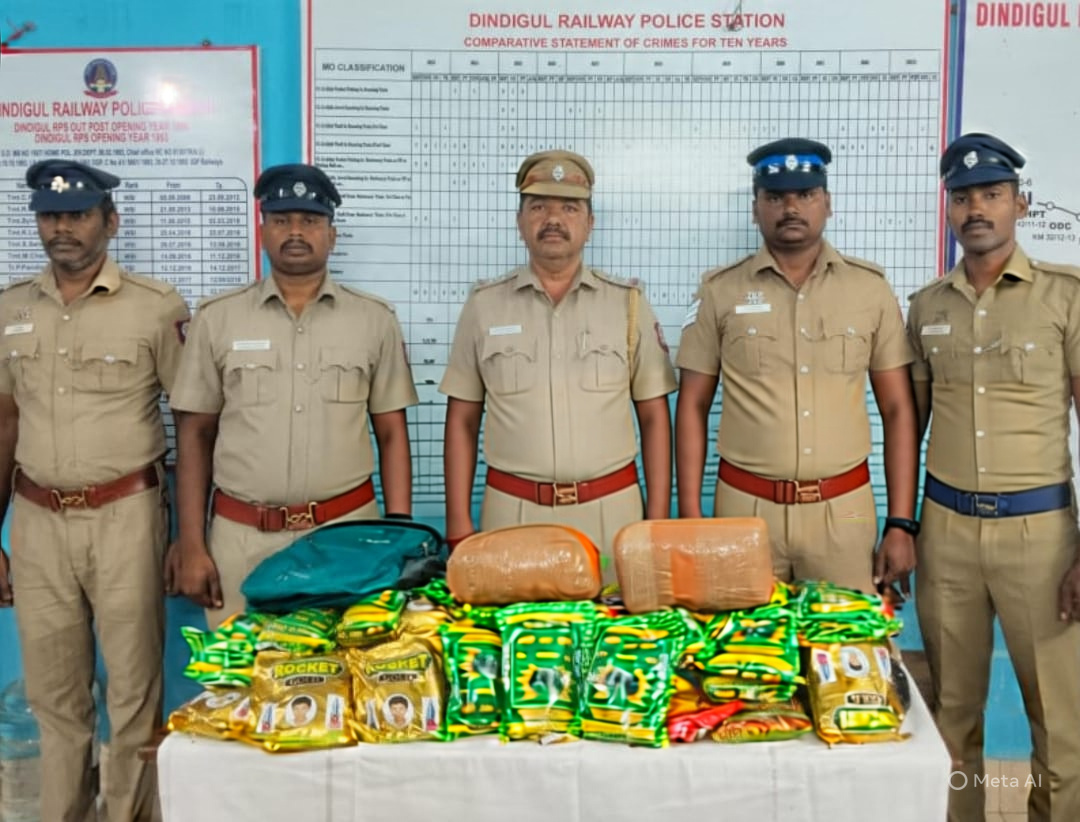 திண்டுக்கல் ரயில் நிலையத்தில் 3,700 கிலோ கஞ்சா, 22 கிலோ குட்கா பறிமுதல்