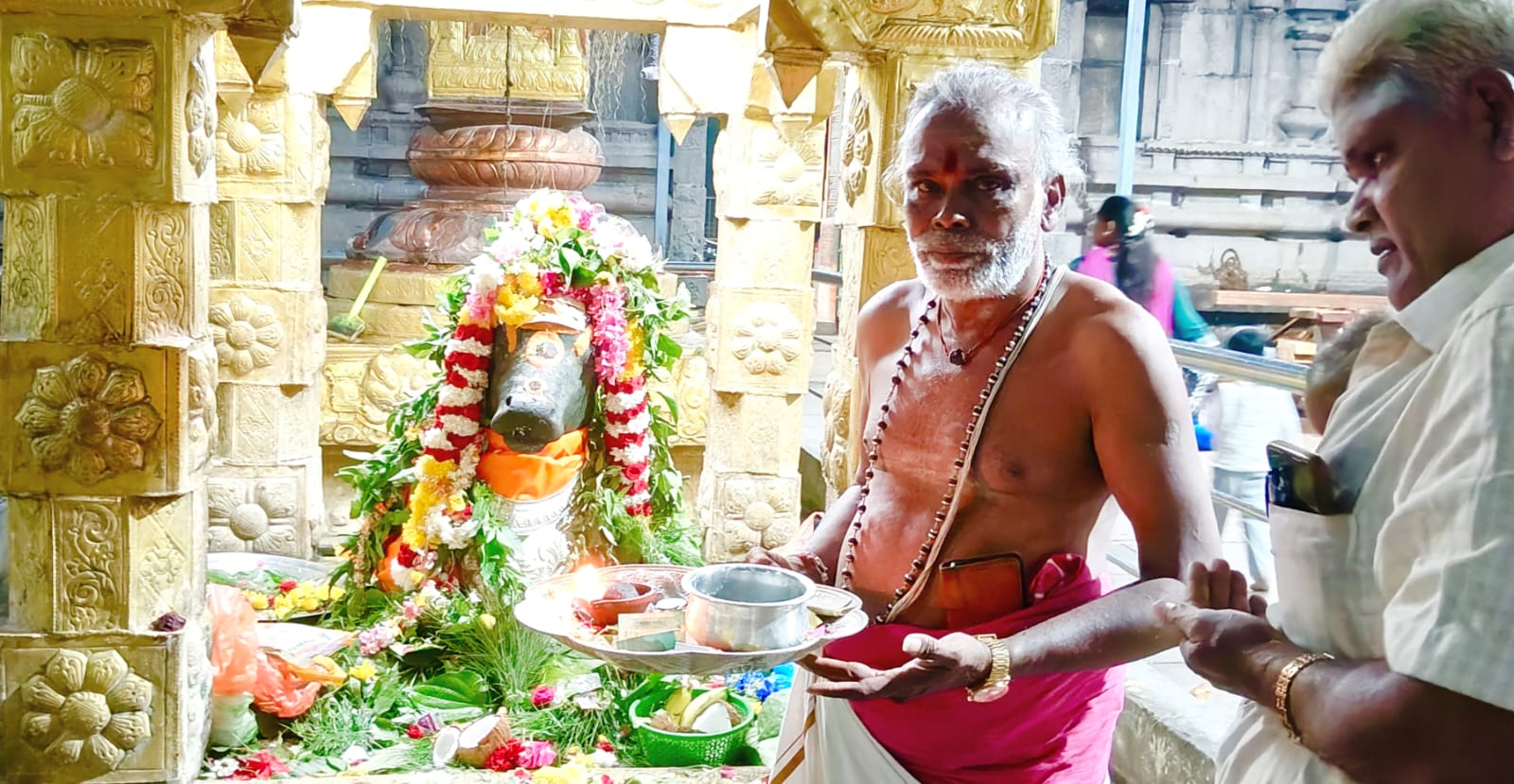 இவ்விழாவில் நந்தி பெருமானுக்கு பால், தேன், பன்னீர்,சந்தனம், இளநீர்,உள்ளிட்ட 16 வகையான அபிஷேக பொருட்களை கொண்டு அபிஷேகம் அலங்காரம் செய்து மூத்த அர்ச்சகர் சங்கர் சிவாச்சாரியார் தலைமையில் பக்தர்களுக்கு தீப ஆராதனை
