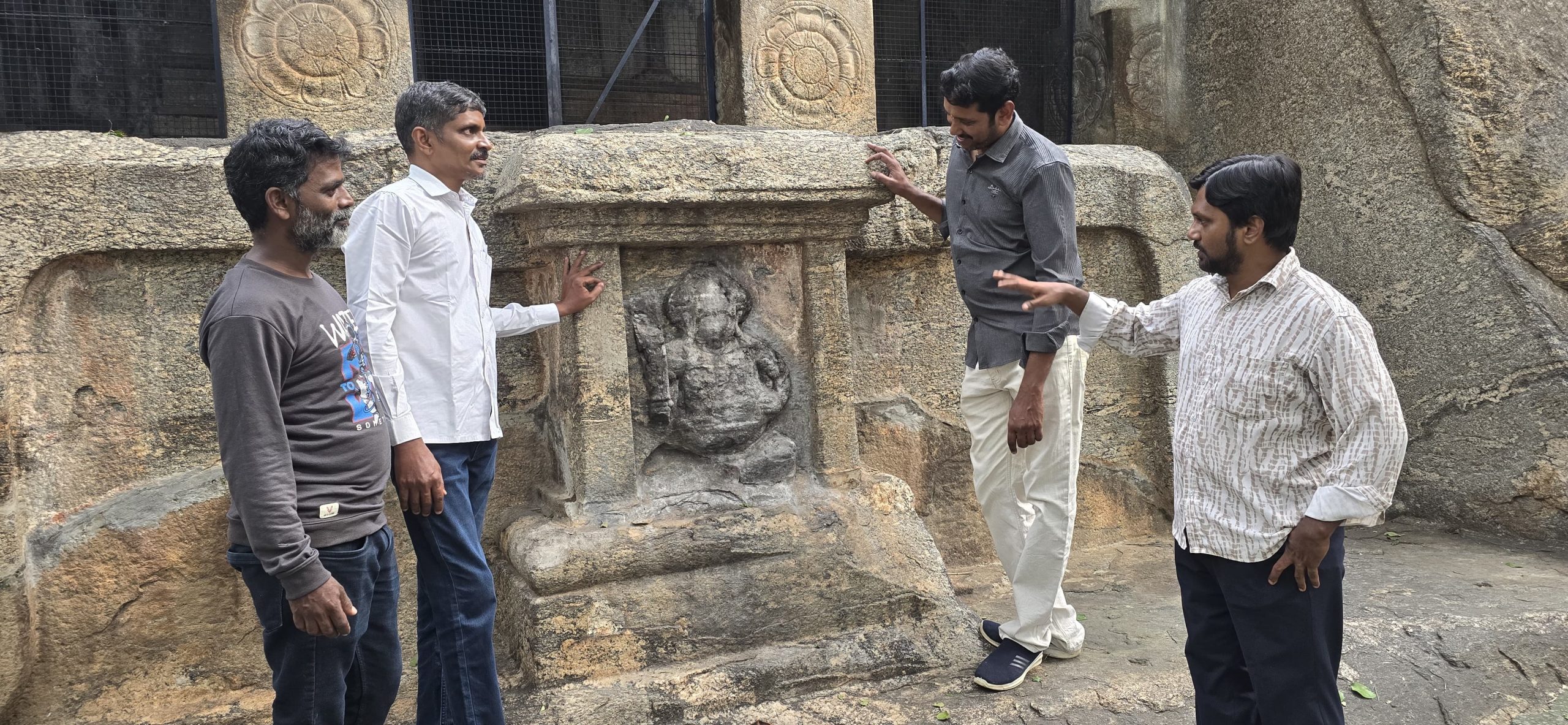 திருச்சிராப்பள்ளி வரலாற்று ஆர்வலர் குழு நிறுவனத் தலைவர் விஜயகுமார் சங்க கால நாணயங்கள் சேகரிப்பாளர்கள் பாண்டியன் முகமது ஜுபேர் சுடுமண் பொருட்கள் சேகரிப்பாளர் சந்திரசேகரன் உள்ளிட்டோர் முருகன் தெய்வானை இணைக்கு குடைவரை கோவில் பார்வையிட்டு பேசுகையில்,மதுரை மாவட்டம் நரசிங்கம்பட்டி