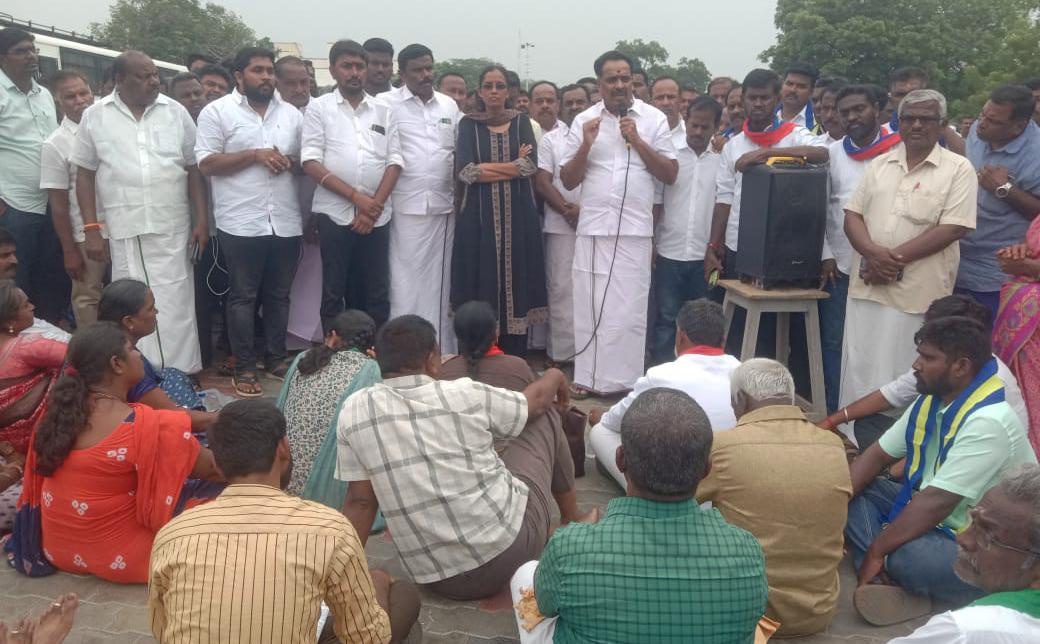 இதில் காங்கிரஸ் எம்.பி ஜோதிமணி, அதிமுக முன்னாள் அமைச்சர் எம்.ஆர்.விஜயபாஸ்கர் , பாமக மாநில துணைத்தலைவர் மருத்துவர் மணி மற்றும் பாமக கிழக்கு மாவட்ட செயலாளர் கொங்கு பிரேம்நாத், பாமக மேற்கு மாவட்ட தலைவர் வழக்கறிஞர் பிரபாகரன் உள்ளிட்டோரும் வருகை புரிந்துள்ளனர். பொதுமக்கள் போராட்டத்திற்கு ஆதரவாக ஒவ்வொரு கட்சியினரும் தங்களது கருத்துக்களை தெரிவித்து பேசி வரும் நிலையில், எதிர்க்கட்சியினரின் பேச்சுக்கு திமுகவினர் எதிர்ப்பு தெரிவித்தபோது, இரு தரப்பினரிடையே வாக்குவாதத்தால் பரபரப்பு ஏற்பட்டுள்ளது.