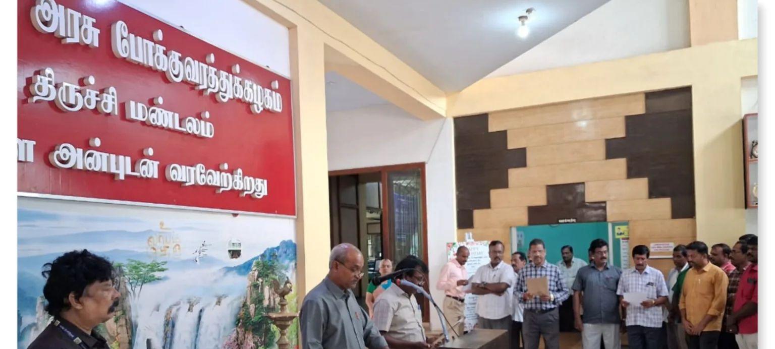திருச்சி மண்டல போக்குவரத்து கழகத்தில் இன்று (18.11.2025) போதைப்பொருள் தடுப்பு விழிப்புணர்வு நாள் முன்னிட்டு உறுதிமொழி நிகழ்ச்சி நடத்தப்பட்டது. இந்நிகழ்ச்சியை துணை மேலாளர் (பணியாளர்) ஆர். இராமநாதன் தலைமையில் அனைத்து பணியாளர்களும் கலந்து கொண்டு உறுதிமொழி எடுத்துக் கொண்டனர்.