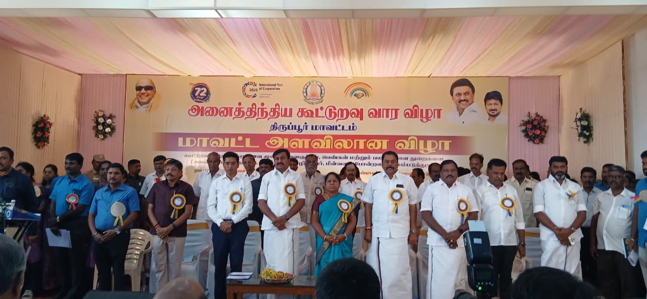 திருப்பூர் மாவட்டம் பல்லடம் அருகே குடுவாய்ப் பகுதியில் கூட்டுறவு 72 ஆவது சங்க வார விழாவில் பங்கேற்று பல்வேறு நலத்திட்ட உதவிகளை வழங்கிய செய்தித் துறை அமைச்சர்மு பெ. சாமிநாதன் மற்றும் அமைச்சர் கயல்விழி செல்வராஜ் மற்றும் மாவட்ட ஆட்சியர் மனிஷ் நாரனரேவ் உள்ளிட்டோர் பங்கேற்றனர்.அப்போது செய்தியாளர்களை சந்தித்த செய்தி துறை அமைச்சர் மு.பெ. சாமிநாதன் ஜாக்டோ ஜியோ அமைப்பினர் போராட்டத்தில் அரசு நடவடிக்கை குறித்த கேள்விகளுக்கு எஸ் ஐ ஆர் நடவடிக்கையை மத்திய அரசு மறுபரிசீலனை செய்ய வேண்டும் என்றும் தமிழக முதல்வர் எஸ்ஐஆர் நடவடிக்கை வேண்டாம் என்று சொல்லவில்லை என்றும் தெரிவித்த அவர் ஜாக்டோ ஜியோ அமைப்பினர் போராட்டத்திற்கு பிறகாவது மத்திய அரசு SIR நடவடிக்கையை மறுபரிசீலனை செய்ய வேண்டும் தெரிவித்தார்