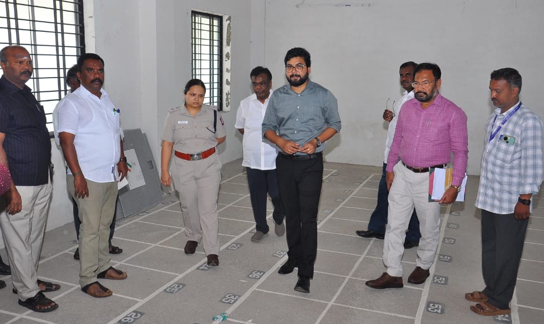 தேனியில் சட்டமன்ற பொது தேர்தல் வாக்கு எண்ணிக்கை மையம் மாவட்ட கலெக்டர் ஆய்வு தமிழக சட்டமன்ற பொதுத் தேர்தல் அடுத்த ஆண்டு 2026 நடைபெற உள்ளதை முன்னிட்டு தேனி மாவட்டம் கொடுவிலார்பட்டி கம்மவார் சங்கம் கல்லூரியில் வாக்கு எண்ணிக்கை மையம் அமைப்பது தொடர்பாக மாவட்ட கலெக்டர் ரஞ்ஜீத் சிங் நேரில் பார்வையிட்டு ஆய்வு மேற்கொண்டார்.