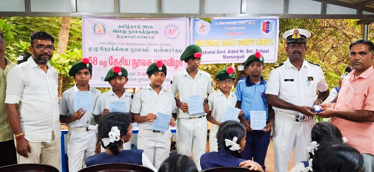 இதில் தேசிய மேல்நிலைப்பள்ளியின் கப்பற்படை என்சிசி மாணவர்கள் 80 பேரும் நூலகத்தின் உறுப்பினர்களாக சேர்க்கப்பட்டனர் முன்னதாக நடைபெற்ற வாசிப்பு இயக்க நிகழ்ச்சிக்கு பள்ளியின் தலைமை ஆசிரியர் எம். திலகர் தலைமை வகித்தார். என்சிசி அதிகாரி முனைவர்.எஸ். அன்பரசு, தமிழாசிரியர் டி.செல்வராஜ் ஆகியோர் முன்னிலை வகித்தனர். நூலகர் வ. அன்பரசு வரவேற்புரை ஆற்றினார்.