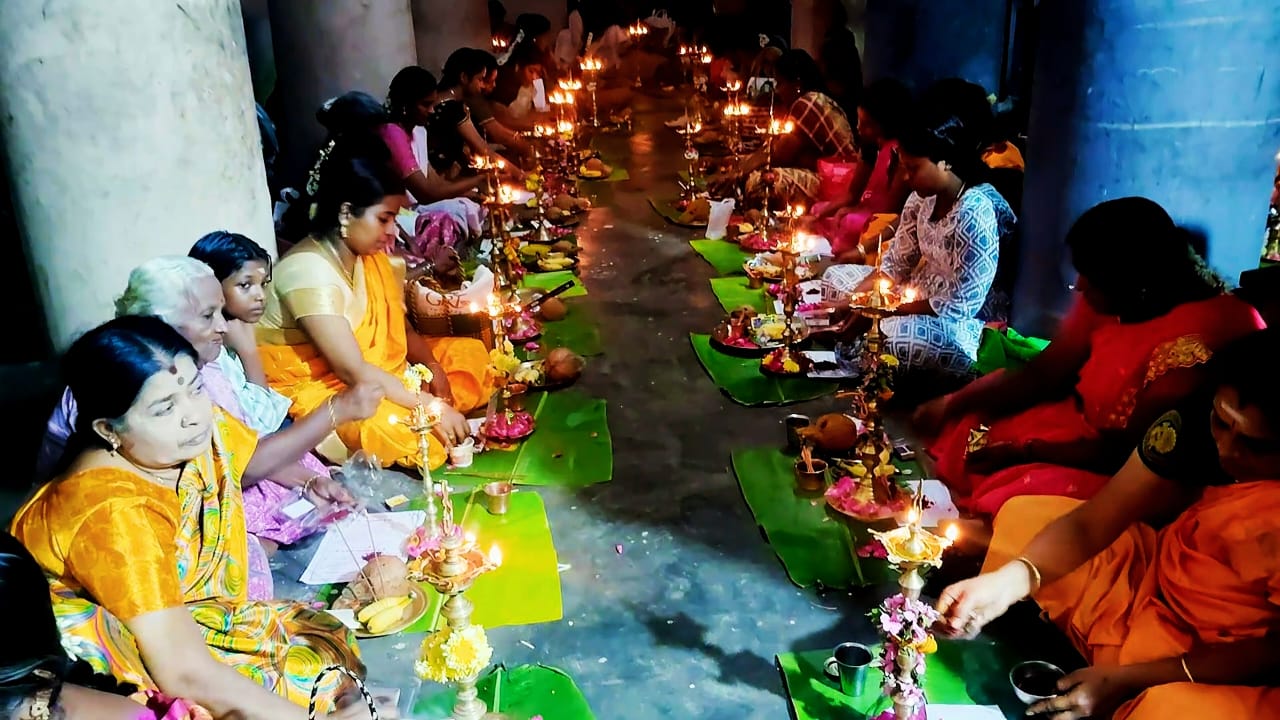 சன்னதியில் முன்பு பெரிய திருவிளக்கினை அம்மனாக பாவித்து குங்குமத்தைக் கொண்டு அர்ச்சனை செய்தனர். சிவாச்சாரியாரின் வேத மந்திரம் முழங்க நடைபெற்ற இந்த திருவிளக்கு பூஜையில் ஏராளமான பெண்கள் கலந்து கொண்டு கோவில் வளாகத்தில் திருவிளக்குகளை ஏற்றி சிறப்பு பூஜைகளை செய்தனர்.