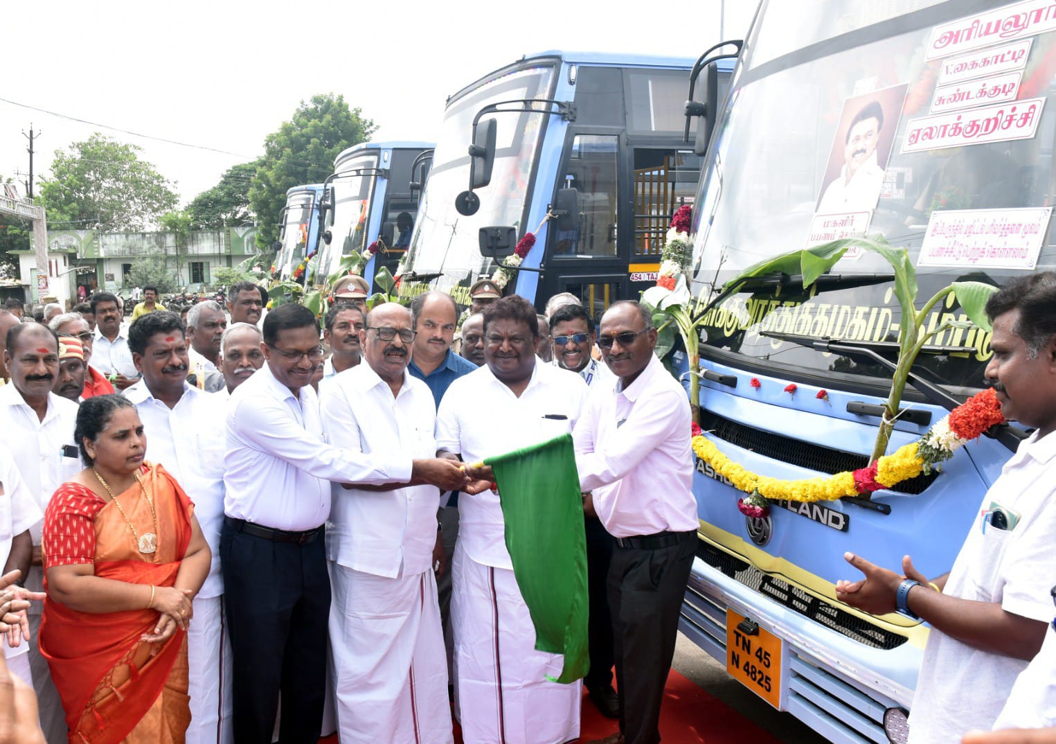 அரியலூரில் நடந்தது தமிழ்நாடு அரசு போக்குவரத்து கழகம் சார்பில் 04 புதிய BS VI நகர பேருந்துகளை போக்குவரத்து மற்றும் மின்சாரத் துறை அமைச்சர் சா சி சிவசங்கர் அவர்கள் பொதுமக்கள் பயன்பாட்டிற்கு கொடியசைத்து துவக்கி வைத்தார்