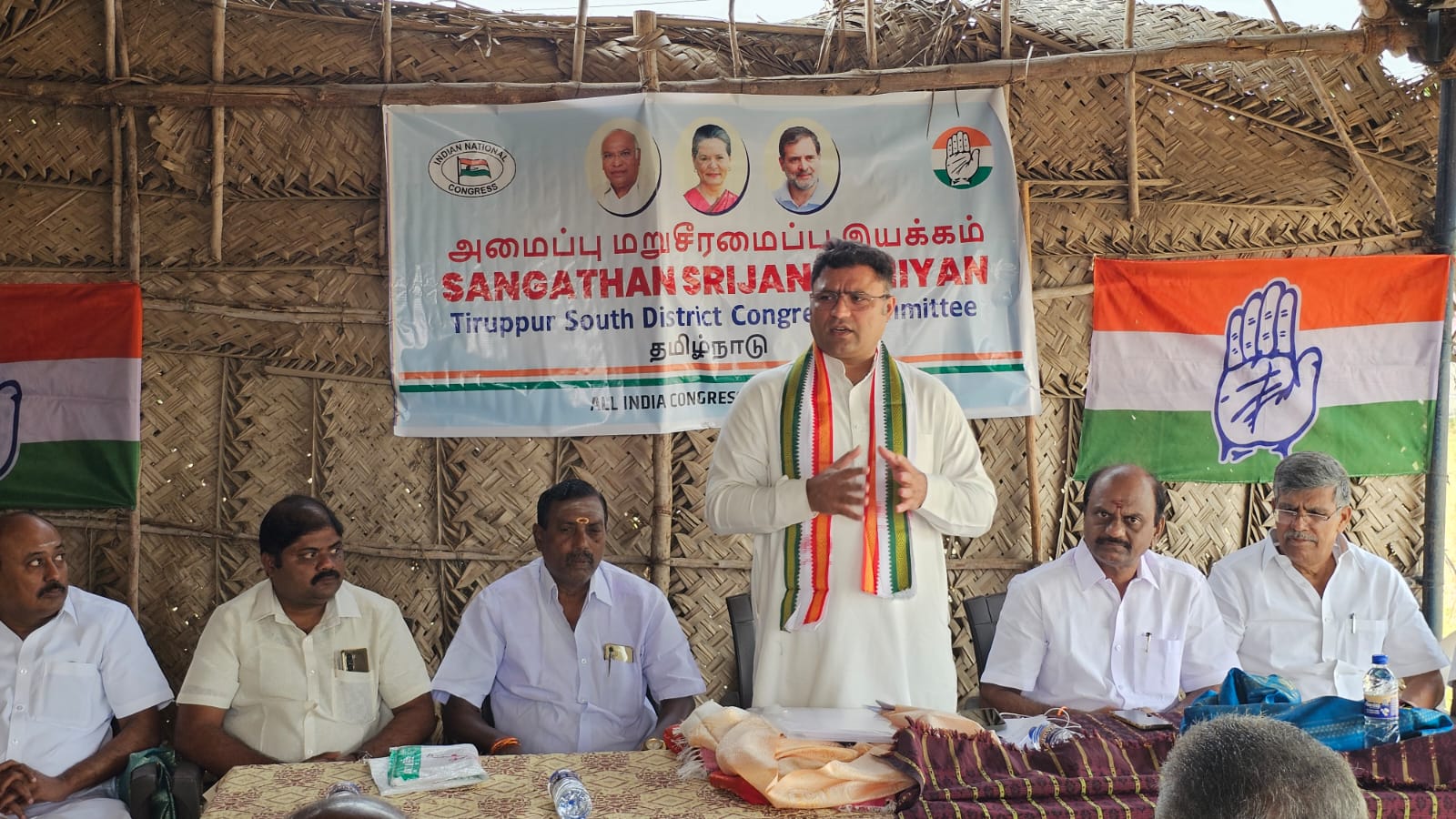 காங்கிரஸ் கட்சியின் “அமைப்பு மறு–சீரமைப்பு இயக்கம்” திட்டத்தின் தொடர்ச்சியாக, திருப்பூர் தெற்கு மாவட்ட காங்கிரஸ் கமிட்டியின் நீட்டிக்கப்பட்ட மாவட்ட செயற்குழு கூட்டம் சூரியநலூர், பழனியப்பா கார்டன், தாராபுரம் வெங்கடேஸ்வரா மண்டபம் மற்றும் மூலனூர் தனியார் மண்டபங்களில் நடைபெற்றது.