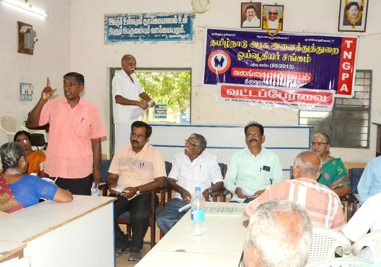 வட்ட பேரவையின் தீர்மானங்கள் தமிழக முதலமைச்சர் தேர்தல் வாக்குறுதியான புதிய பென்சன் திட்டத்தை ரத்து செய்து பழைய பென்சன் திட்டத்தை அமல்படுத்தல், 70 வயதில் 10சதவீதம் கூடுதல் ஓய்வூதியம் வழங்குதல், ஒய்வு பெற்ற சத்துணவு, அங்கன்வாடி,வருவாய் கிராம உதவியாளர்கள், ஊராட்சி செயலாளர்கள் உள்ளிட்ட தொகுப்பூதியம் பெற்று ஒய்வு பெற்ற அனைவருக்கும் குறைந்த பட்ச மாத ஓய்வூதியம் ரூ. 7,850 வழங்க வேண்டுதல், 21மாதமாக விட்டு விட்டு நிறுத்தி வைக்கப்பட்டுள்ள அகவிலைப்படியினை வழங்குதல், புதிய மருத்துவ காப்பீடு திட்டத்தில் உள்ள குறைகள் மற்றும் தீர்வு செய்யப்படாத பட்டியல்களையும், கொரோன கால நிலுவை பட்டியல்களையும் தீர்வு செய்து அனைவருக்கும் வாரிசு