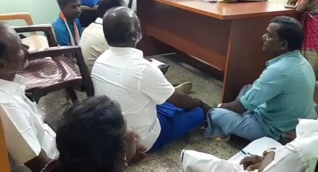 சிவகங்கையில்மாவட்ட ஆட்சியர் அலுவலகம் எதிரில் உள்ள நில எடுப்பு தனி வட்டாட்சியர் அலுவலகத்தை ஏராளமானோர் நிலத்திற்கு உரிய பணம் கேட்டு வட்டாச்சியர் இருக்கை முன்பு தரையில் அமர்ந்து தர்ணாவில் ஈடுபட்டனர்.