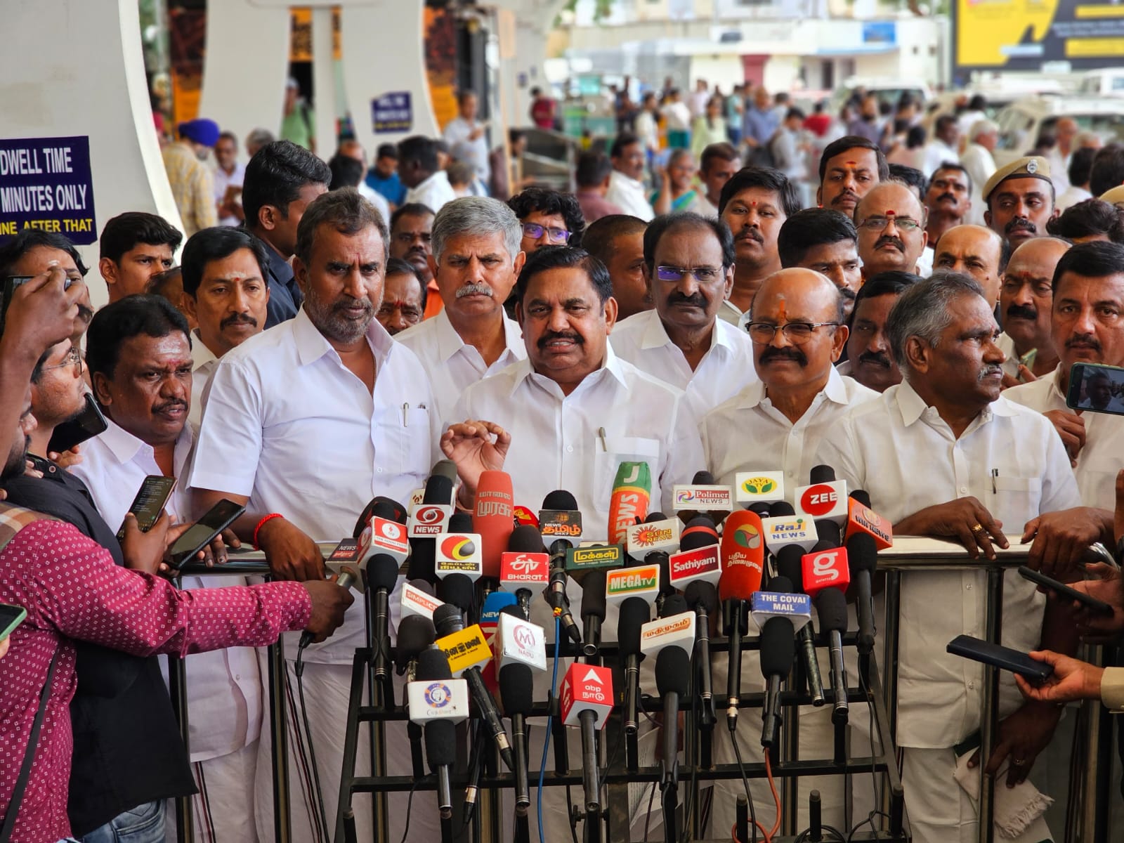 டெல்லியில் இருந்து விமான மூலம் கோவை வந்தடைந்த எதிர்க்கட்சித் தலைவரும், அதிமுக பொதுச் செயலாளருமான எடப்பாடி பழனிச்சாமி விமான நிலையத்தில் செய்தியாளர்களை சந்தித்தார்.