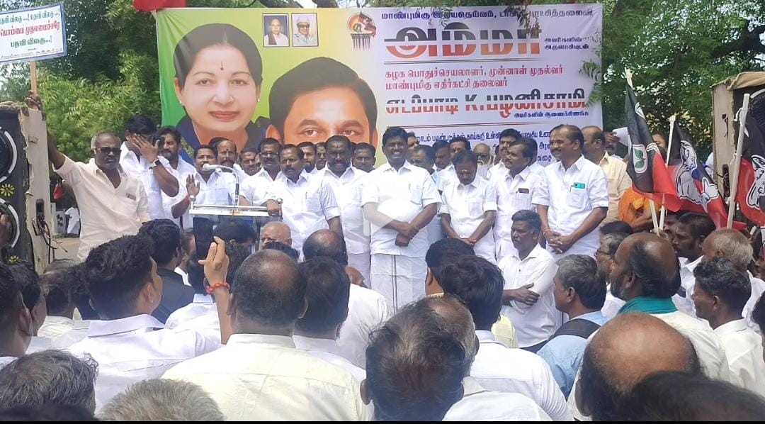 ஏ வி நாகராஜன் ,N.M ராஜா விஜி கருணாகரன்,செல்வமணி,கோபி இளங்கோவன், அதிமுக நிர்வாகிகள் பொதுமக்கள் என ஏராளமான கலந்துகொண்டு தமிழக அரசு எதிராக கண்டன கோசங்களை எழுப்பினர்