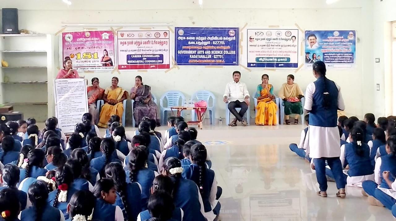 கடையநல்லூர் மனோன்மணியம் அரசு கலை மற்றும் அறிவியல் கல்லூரியில் கலைஞர் நூற்றாண்டு விழாவினை முன்னிட்டு சமூக நலன் மற்றும் மகளிர் உரிமைத்துறை சார்பில் சமூக நலத்துறை சார்ந்த திட்டங்கள்,சட்டங்கள் மற்றும் தொழில் நெறிமுறைகள் விழிப்புணர்வு நிகழ்ச்சி கல்லூரி முதல்வர் முனைவர் குமரன் தலைமையில் நடைபெற்றது.