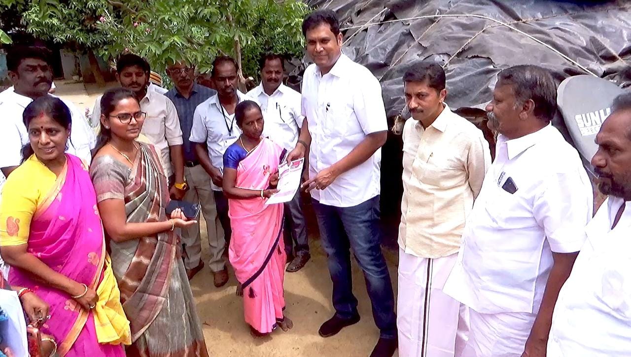 தொடர்ந்து, வல்லூர் ஊராட்சியில் கலைஞர் மகளிர் உரிமைத் தொகை விண்ணப்ப படிவத்தினை அப்பகுதியிலுள்ள வீடுகளுக்கு தொழில் துறை அமைச்சர் டி.ஆர்.பி.ராஜா வழங்கி துவக்கி வைத்தார்கள்.
