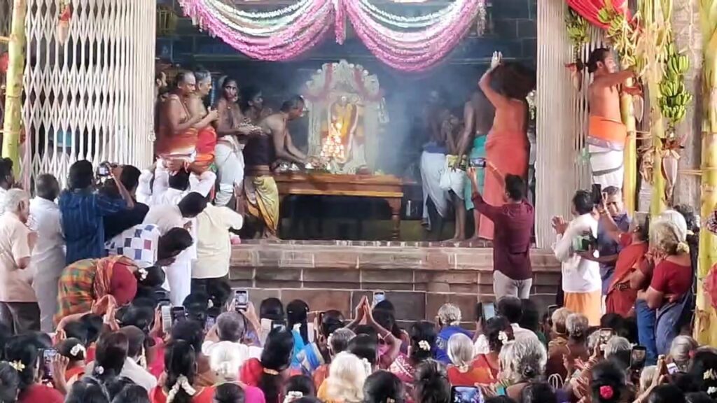 பின்னர் பட்டு வஸ்திரம், மலர்கள் கொண்டு அலங்காரம் செய்யப்பட்டு மகா தீபாராதனை காட்டப்பட்டது. இதில் தர்மபுரம் ஆதீனம் 27வது குரு மகா சன்னிதானம் ஸ்ரீலஸ்ரீ மாசிலாமணி தேசிக ஞான சம்பந்த பரமாச்சாரியார் சுவாமிகள் பங்கேற்று தரிசனம் செய்தார்.