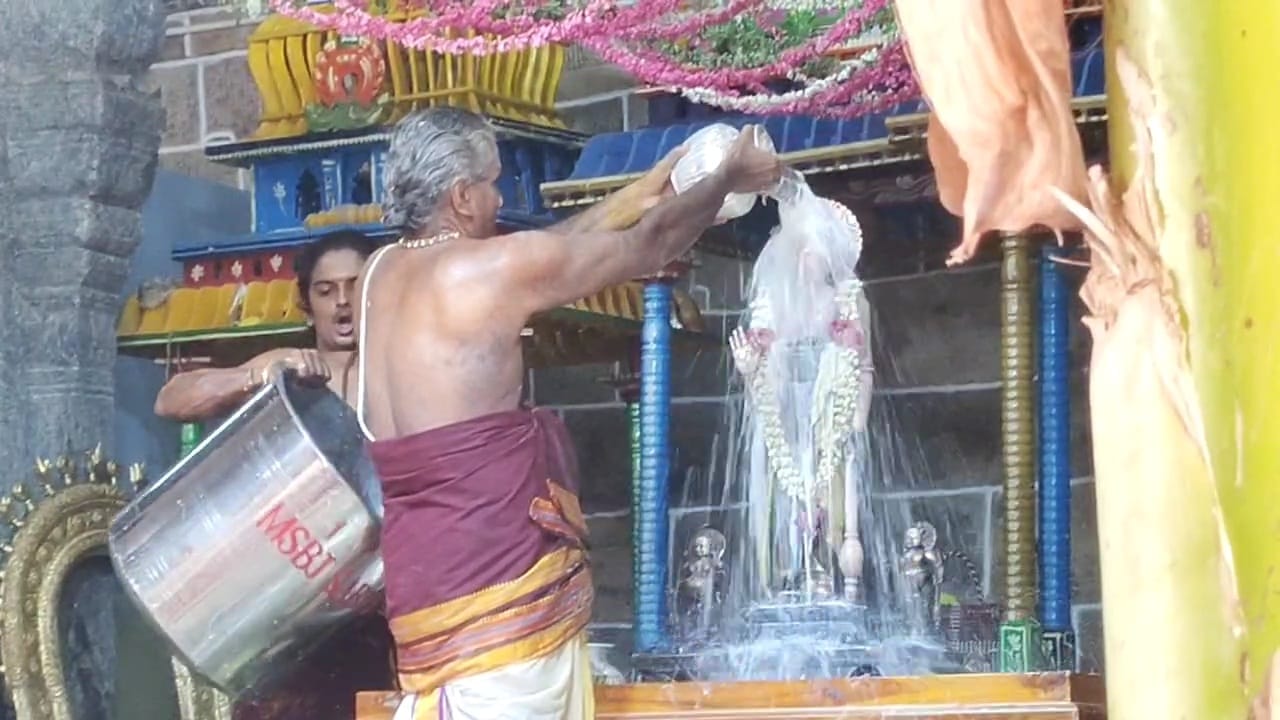 பின்னர் எதாஸ்தானத்திலிருந்து முத்து சட்டை நாதர் சுவாமி புறப்பாடாகி உற்சவம் மண்டபம் எழுந்தருள அங்கு சுவாமிக்கு 51 வகையான நறுமண திரவிய பொருட்களைக் கொண்டு சிறப்பு அபிஷேகம், புனித நீர் அடங்கிய 108 கலசாபிஷேகம் செய்யப்பட்டது.