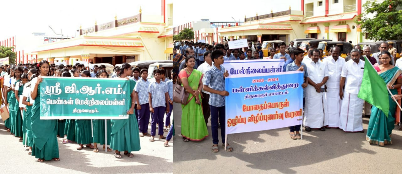திருவாரூரில் பள்ளி கல்வித்துறையின் சார்பில் போதைப் பழகத்திற்கு எதிரான விழிப்புணர்வு பேரணி