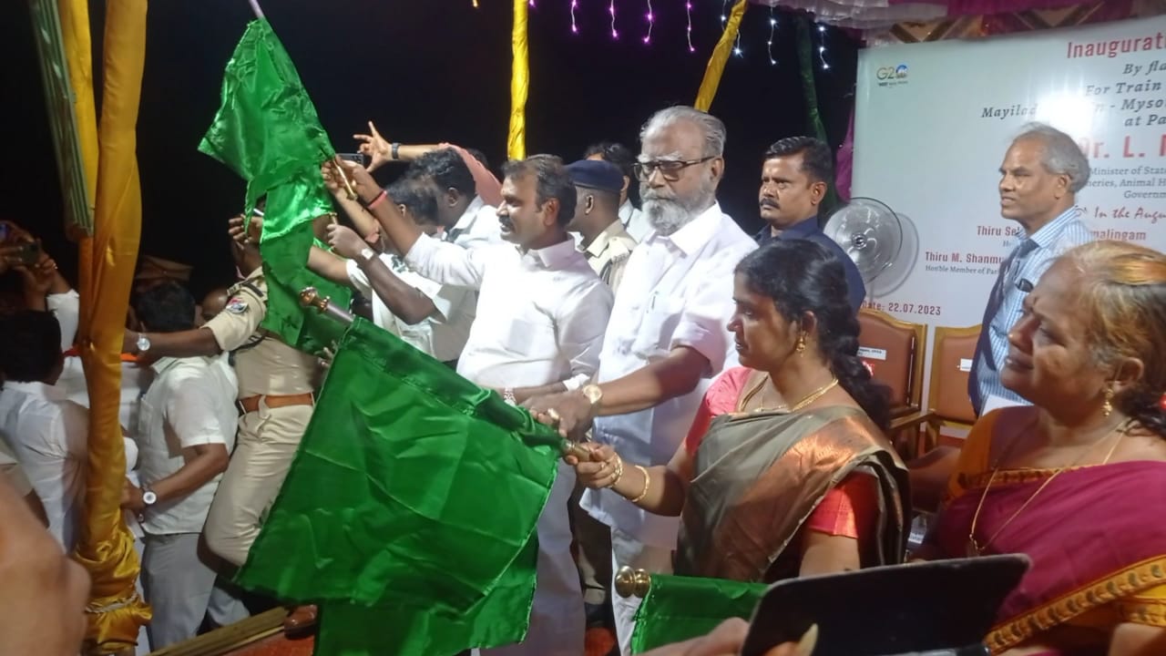 தஞ்சாவூர் மாவட்டம் பாபநாசம் ரயில் நிலையத்தில் மயிலாடுதுறை- மைசூர் எக்ஸ்பிரஸ் தொடக்க விழா நிகழ்ச்சி நடைபெற்றது.