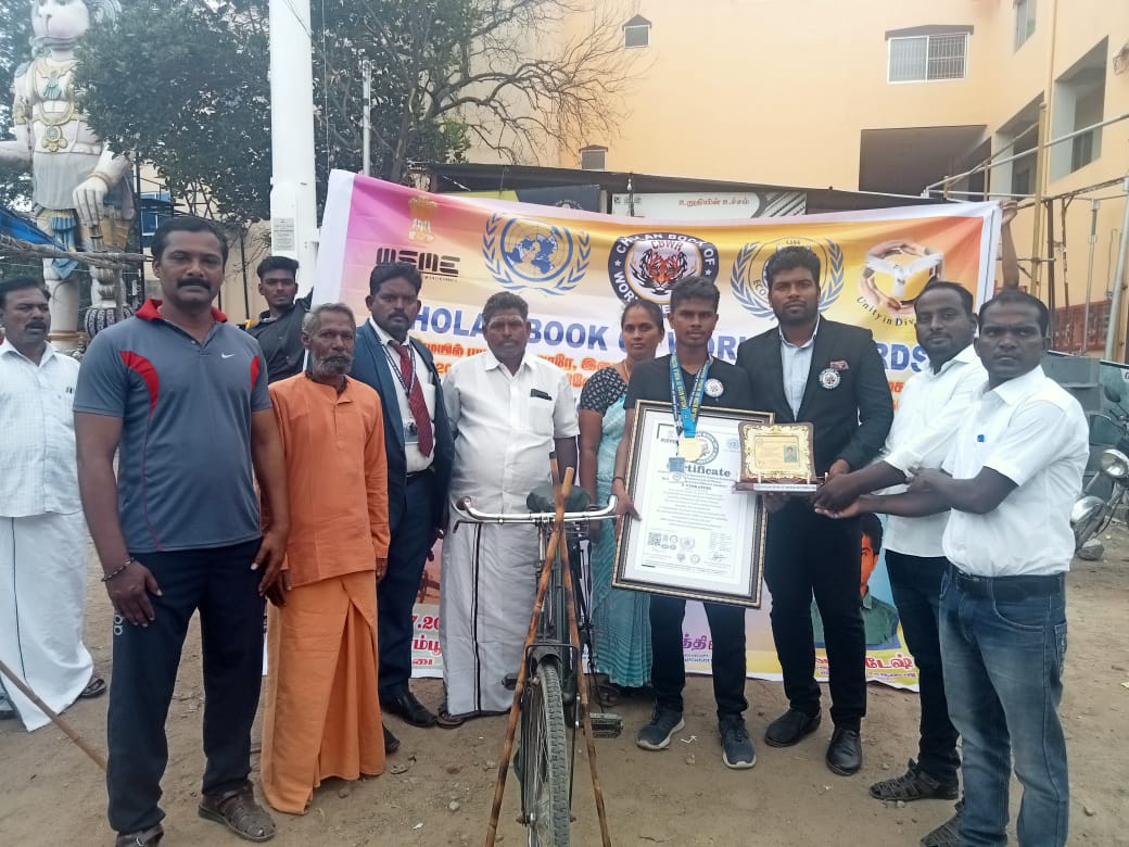 சங்கர் – கவிதா இவர்களின் மகனும் திருக்கோவிலூர் கபிலர் அரசு ஆண்கள் மேல்நிலைப் பள்ளியில் பயின்று கல்லூரி படித்து வரும் மாணவன் வெங்கடேஷ் என்பவர் மாடாம் பூண்டி கூட்டு ரோட்டில் இருந்து மணலூர்பேட்டை வரையிலான பத்து கிலோமீட்டர் தூரத்தை மிதிவண்டியை மிதித்தபடி இரு கைகளிலும் சிலம்பம் சுற்றியவாறு 20 நிமிடத்தில் கடந்து சாதனை புரிந்தார், இந்நிகழ்ச்சியை மாவட்ட உடற்கல்வி இயக்குனர் ஹரிஹரன்,சோழன் உலக சாதனை அமைப்பின் கள்ளக்குறிச்சி மாவட்ட தலைவர் சூரியமூர்த்தி ஆகியோர் இந்த நிகழ்ச்சியை கொடி அசைத்து வைத்து துவக்கி வைத்தனர், சாதனை படைத்த மாணவன் வெங்கடேசஷ்க்கு சால்வை அணிவித்து சாதனை முயற்சியை பாராட்டி “சோழன் உலக சாதனை விருது” சான்றிதழை வழங்கினார்கள்,