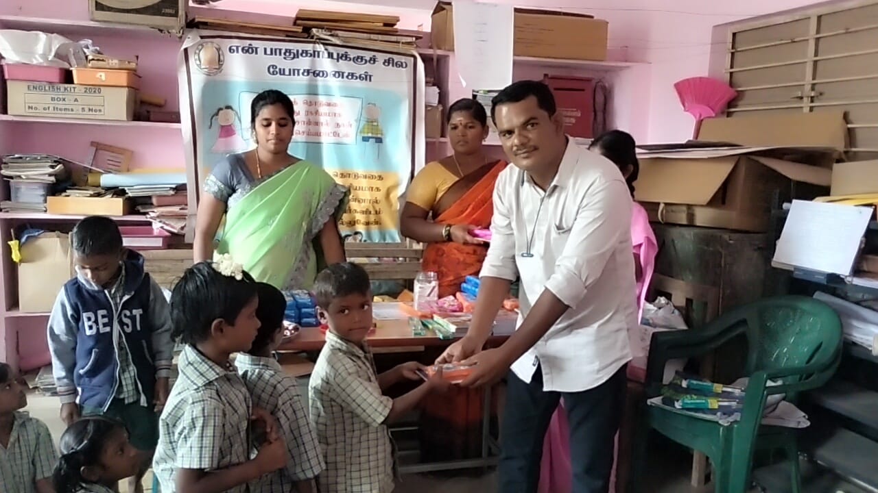 திருப்பத்தூர் மாவட்டம் திருப்பத்தூர் ஒன்றியம் புதுக்கோட்டை ஊராட்சி பெரிய வெங்காயப்பள்ளி பகுதியில் பாமகவின் நிறுவனர் டாக்டர் ராமதாசு அவர்களின் 85 வது பிறந்தநாளை முன்னிட்டு அரசு ஊராட்சி ஒன்றிய தொடக்கப்பள்ளியில் மாணவர்களுக்கு நலத்திட்ட உதவிகள் வழங்கும் விழா திருப்பத்தூர் வடக்கு ஒன்றிய பாமகவின் இளைஞரணி செயலாளர் மொரார்ஜ் தேசாய் தலைமையில் நடைபெற்றது. இதில் 36 பள்ளி மாணவர்களுக்கு தேவையான கல்வி உபகரணங்களை வார்டு உறுப்பினர் ராதிகா வழங்கினார். அப்போது உடன் பாமக நிர்வாகிகள் அனுமுத்து, மாணிக்கம், செல்வம் மற்றும் ஆசிரியர் பொற்கொடி உட்பட பலர் உடனிருந்தனர்
