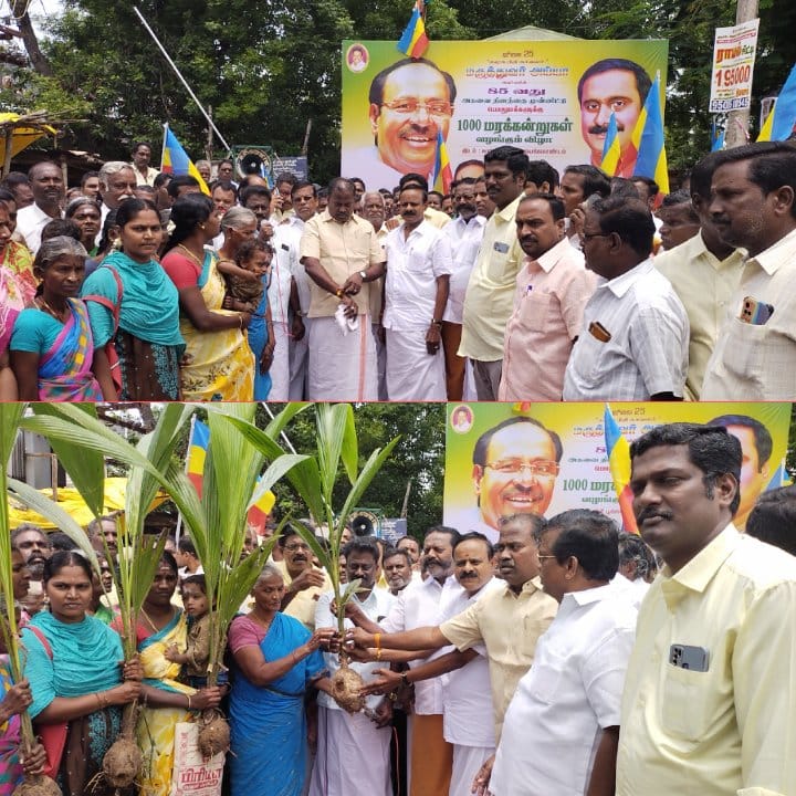 இதில் பாமக நிறுவனத் தலைவர் மருத்துவர் ராமதாஸ் அய்யா வாழ்க வாழ்க என கோஷமிட்டு 1000 மரக்கன்றுகள் மற்றும் இனிப்பு வழங்கி கொண்டாடினர்.