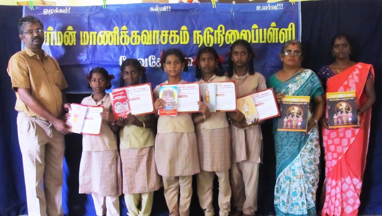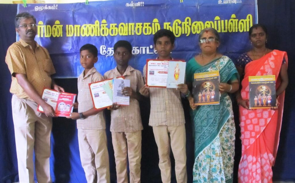 இப்பள்ளியின் யோகேஸ்வரன் என்ற மாணவர் சிவபுராணத்தை மிக அருமையாக கூறியதை பாராட்டி சிவகங்கை மாவட்ட தமிழ் வளர்ச்சி துறை அலுவலர் நாகராஜன் ரூபாய் 500 பணப்பரிசினை வழங்கி பாராட்டினார் என்பது குறிப்பிடத்தக்கது. ஆசிரியர் ஸ்ரீதர் நன்றி கூறினார்.