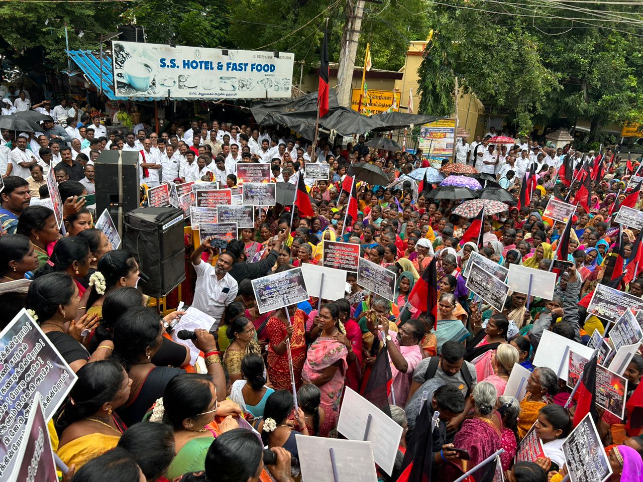 தர்மபுரி மாவட்டம் தர்மபுரி பிஎஸ்என்எல் அலுவலகம் அருகில் திமுகவினர் மாபெரும் கண்டன ஆர்ப்பாட்டம் நடைபெற்றது இதில் மணிப்பூர் பாலியல் வன்கொடுமை மற்றும் கண்டித்து திமுகவினர் ஆர்ப்பாட்டம் நடைபெற்றது இந்த ஆர்ப்பாட்டத்தில் தாய்மையை தலை குனிய வைத்த பிஜேபி அரசை கண்டித்து மாபெரும் கண்டன ஆர்ப்பாட்டம் நடைபெற்றது. இதில் மகளிர் அணி சார்பாக திரளான பெண்கள் கலந்து கொண்டனர்