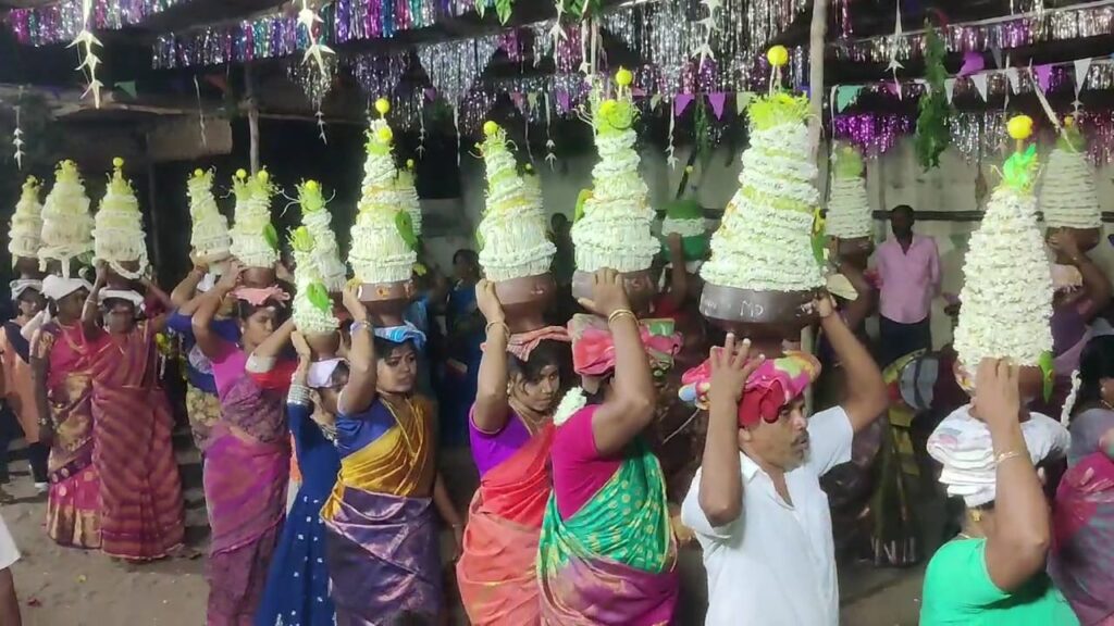 அதனையடுத்து வீடுகளில் வளர்க்கப்பட்ட முளைப்பாரியை பக்தர்கள் மேளதாள மங்கள வாத்தியங்கள் முழங்க கோலாட்டத்துடன் கோயிலுக்கு எடுத்து வந்து பெண்கள் ஆண் என கும்மியடித்து குலவை இட்டு வழிபாடு செய்தனர்.